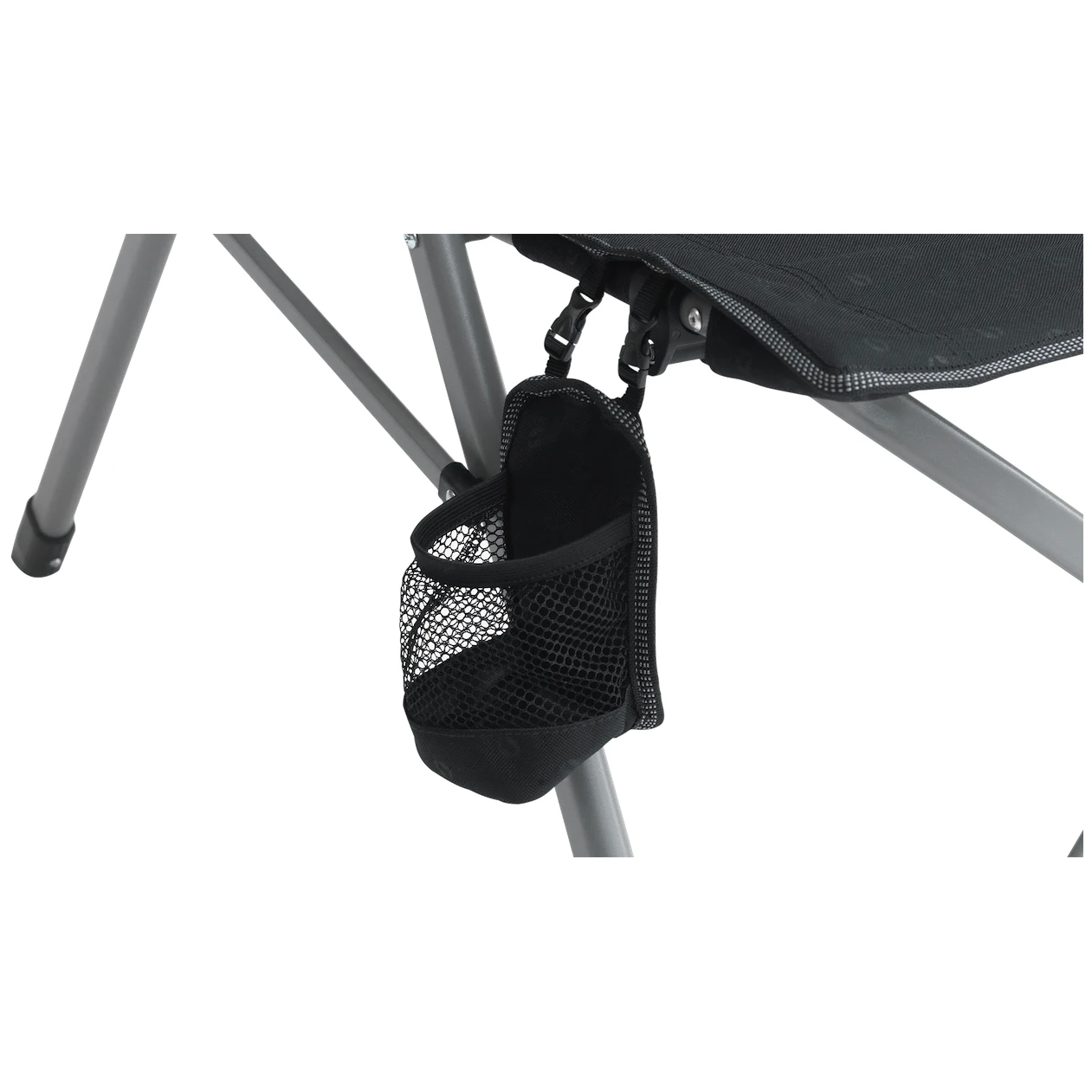 Čvrsta presvlaka stolca od poliestera nadopunjena je kvalitetnom laganom čeličnom konstrukcijom s bravom za veću sigurnost. Ovo je jamstvo trajnosti. Osim toga, donji dio ima povećanu površinu, što osigurava stabilnost čak i na mekšem terenu, primjerice u blizini vode. Stolica ima široke naslone za ruke i dobru potporu leđa, koja se može podesiti u jedan od tri položaja. Sa strane ćete pronaći uklonjivi držač za piće.