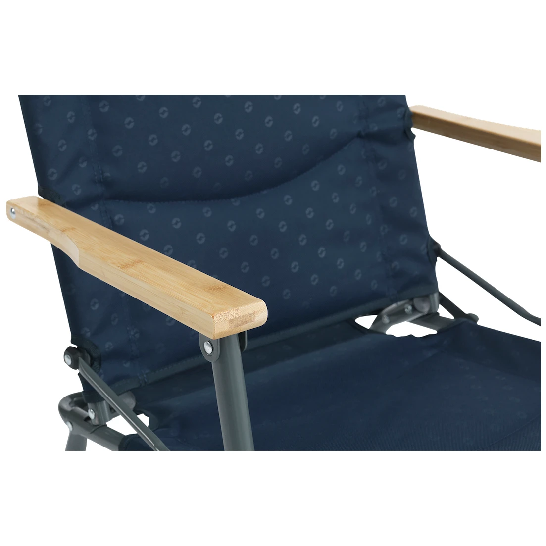 Čvrsta presvlaka stolca od poliestera nadopunjena je kvalitetnom laganom čeličnom konstrukcijom s bravom za veću sigurnost. Ovo je jamstvo trajnosti. Stolac ima široke bambusove naslone za ruke.