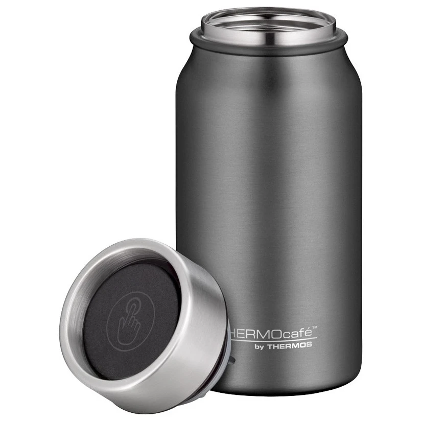 Thermos Thermocafé 350 ml je lagan i kompaktan inox termos s dvostrukom vakuum izolacijom. Zahvaljujući svojim dimenzijama, bez problema stane u većinu automobilskih držača i idealan je izbor za kavu, čaj i hladne napitke tijekom putovanja ili kretanja tijekom dana.