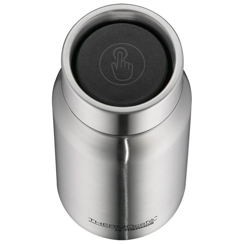 Termos je opremljen praktičnim zatvaračem na gumb koji omogućuje otvaranje i zatvaranje jednom rukom. U zatvorenom stanju, termos je vodootporan, tako da se ne morate brinuti o neželjenom curenju sadržaja. Posebna konstrukcija zatvarača omogućuje pijenje napitka po cijelom obodu poklopca, što ćete cijeniti posebno u situacijama kada se trebate usredotočiti i piti jednom rukom.