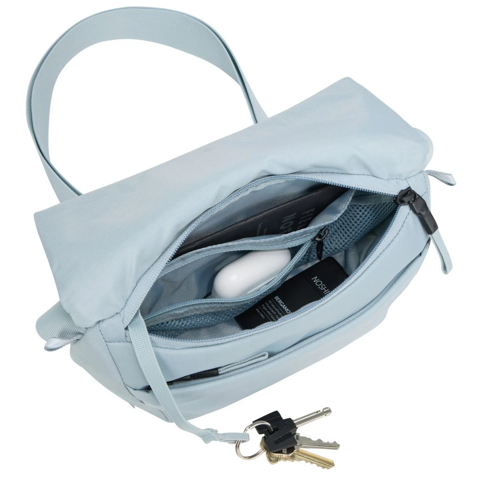 EnRoute Sling Bag 2L torba preko ramena marke Thule s bluesign® certifikatom, izrađena od recikliranih materijala. Nudi svestrane mogućnosti nošenja - kao torbu preko ramena ili oko struka. Mrežasti džep s patentnim zatvaračem u glavnom pretincu drži sitnice lako dostupnima. Zahvaljujući reflektirajućim elementima na naramenici/pojasu za kukove, bit ćete dobro vidljivi čak i u sumrak.