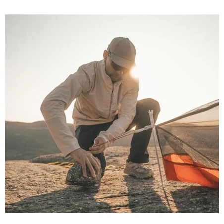 Za savršenu zaštitu u svim vremenskim uvjetima pobrinut će se vodootporni sloj HydroTex SiliPoly RS, koji se ne rasteže. Ovaj materijal ima vodeni stupac od 2000 mm, a zahvaljujući ripstopu, otporan je na mehanička oštećenja. Spavaća soba je izrađena od prozračnog najlona, pod je od ripstop najlona, presvučen poliuretanom i ima vodeni stupac od 5000 mm. Zalijepljeni šavovipodrazumijevaju se. Materijali ne sadrže PFAS.
