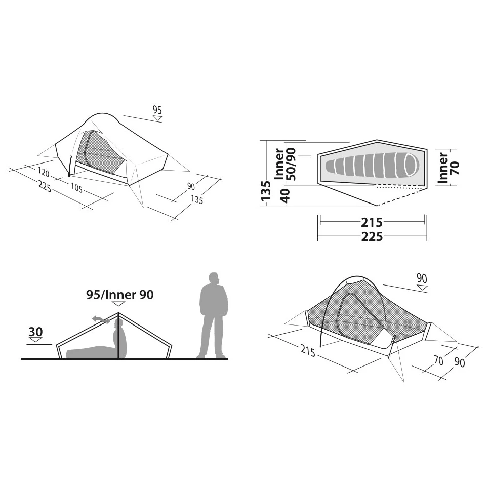 Zahvaljujući sustavu Flexpitch, šator nudi varijabilnu upotrebu. Možete postaviti samo unutarnju spavaću sobu i promatrati zvijezde noću, polovicu vanjske topi iznad spavaće sobe za djelomičnu zaštitu, vanjsku topi kao svjetlo sklonište ili puni šator.