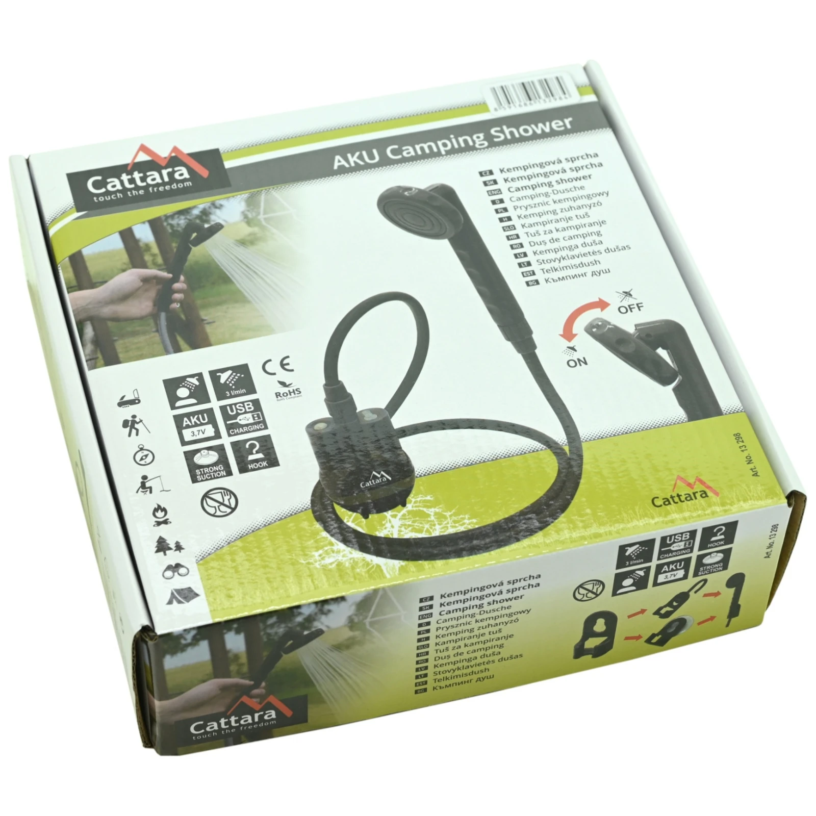 Kompaktna i lako prenosiva akumulatorska tuš-glava Cattara idealan je pomoćnik za kampiranje, uz vodu, na festivalima i drugim aktivnostima na otvorenom.