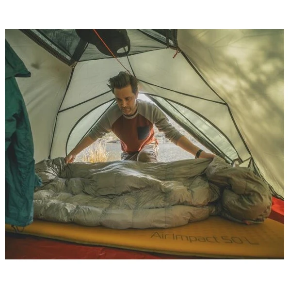 Kombinira punjenje od pačjeg paperja s punjenjem od 600 kuina i omjerom 75/25 paperja i poliesterskim materijalom MicroThermo Ball. Zajedno, ovi materijali savršeno izoliraju, imaju malu težinu i veliku mogućnost pakiranja. U isto vrijeme, ova vreća za spavanje idealna je za mokre uvjetejer je sintetičko vlakno strateški postavljeno tamo gdje je najpotrebnije. Zahvaljujući hibridnoj konstrukciji, vreća za spavanje također se savršeno suši. Vanjski najlonski materijal s ripstop čvrst je i otporan na mehanička oštećenja. Podstava savršeno odvodi vlagu od tijela, što povećava udobnost.