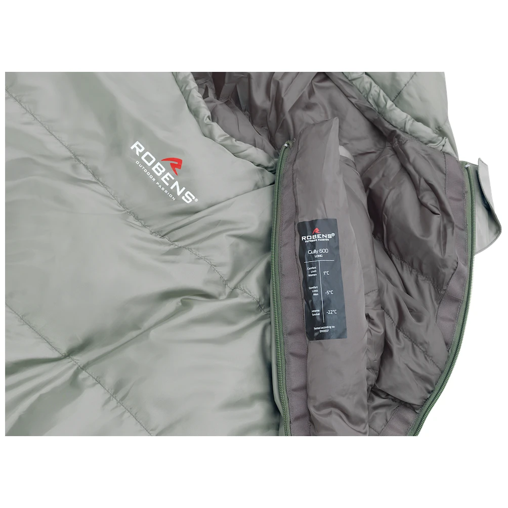 Pernata vreća za spavanje Gully 600 -5°C Regular marke Robens namijenjena je za korištenje od proljeća do jeseni.