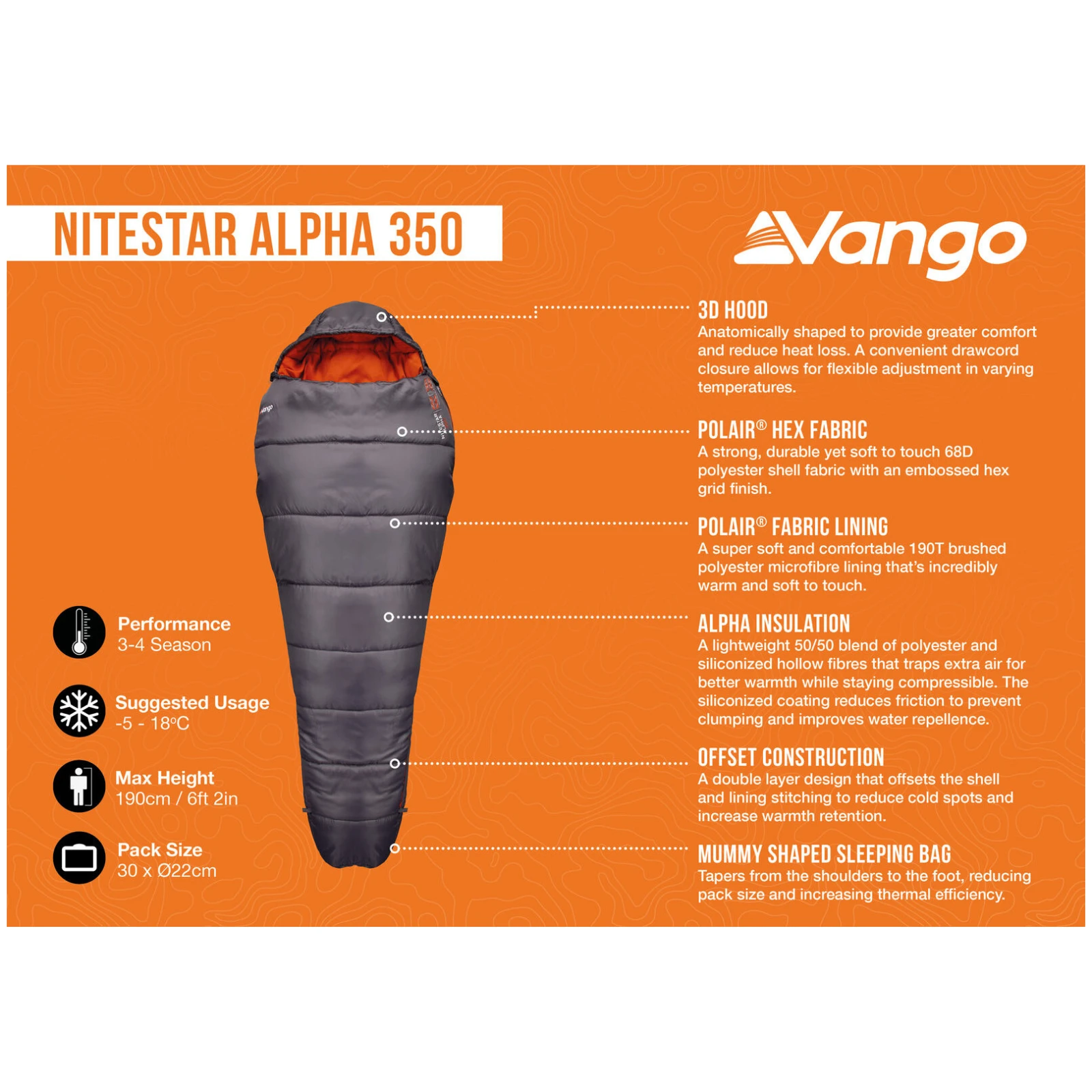 Vango Nitestar Alpha 350 spada među najprodavanije i najcjenjenije vreće za spavanje marke Vango – i to nije slučajnost. Nudi izvrstan kompromis između toplinske udobnosti, male težine i dobre stlačivosti, što ga čini univerzalnom vrećom za spavanje za širok spektar aktivnosti na otvorenom. Zahvaljujući svojim svojstvima, čak je i preporučena oprema za ekspedicije u sklopu programa Duke of Edinburgh’s Award.