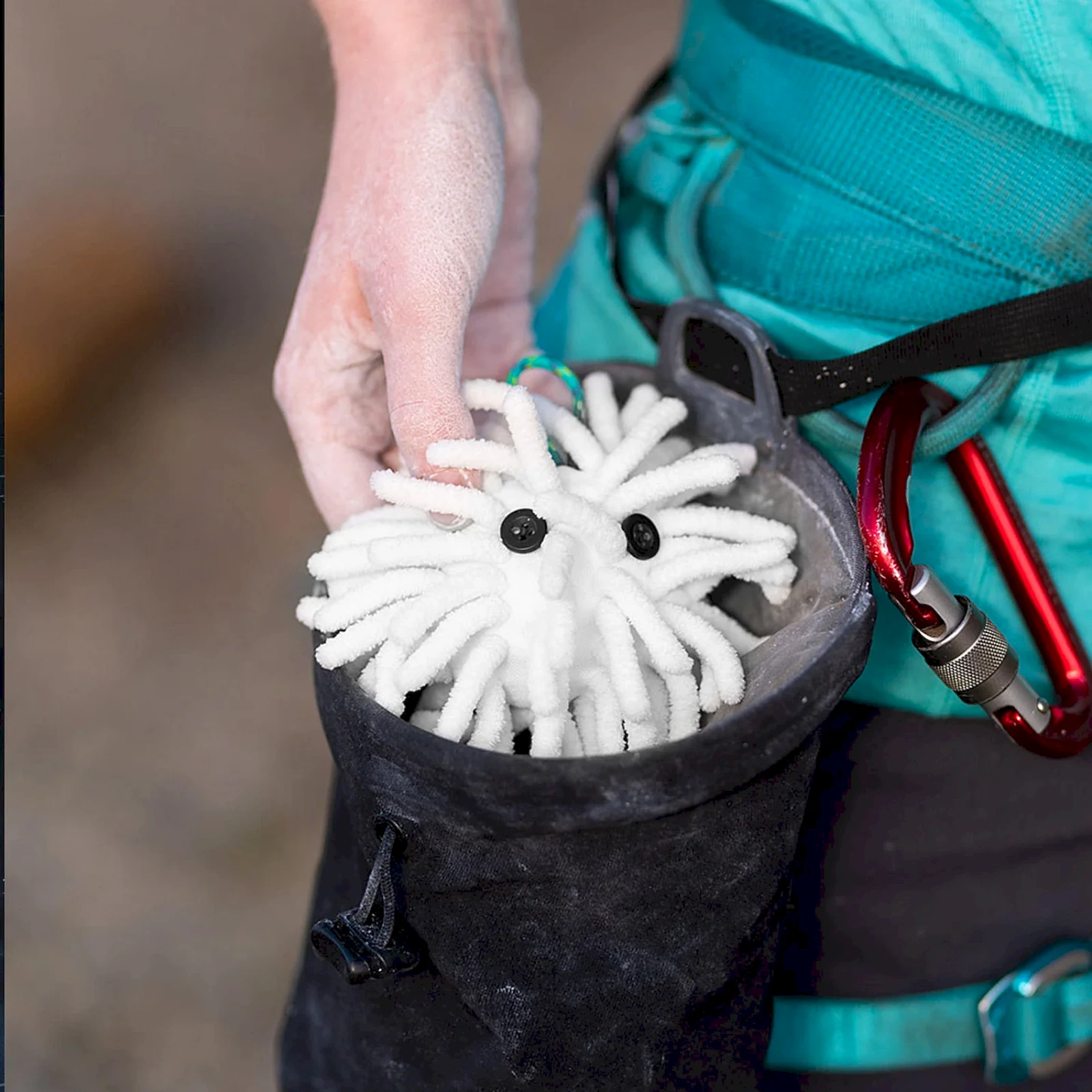 Chalktopus osigurava ravnomjerno nanošenje magnezija i drži prašinu tamo gdje treba biti – u vrećici, a ne svuda okolo.