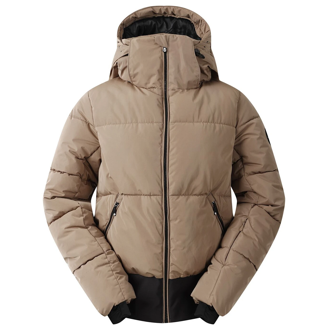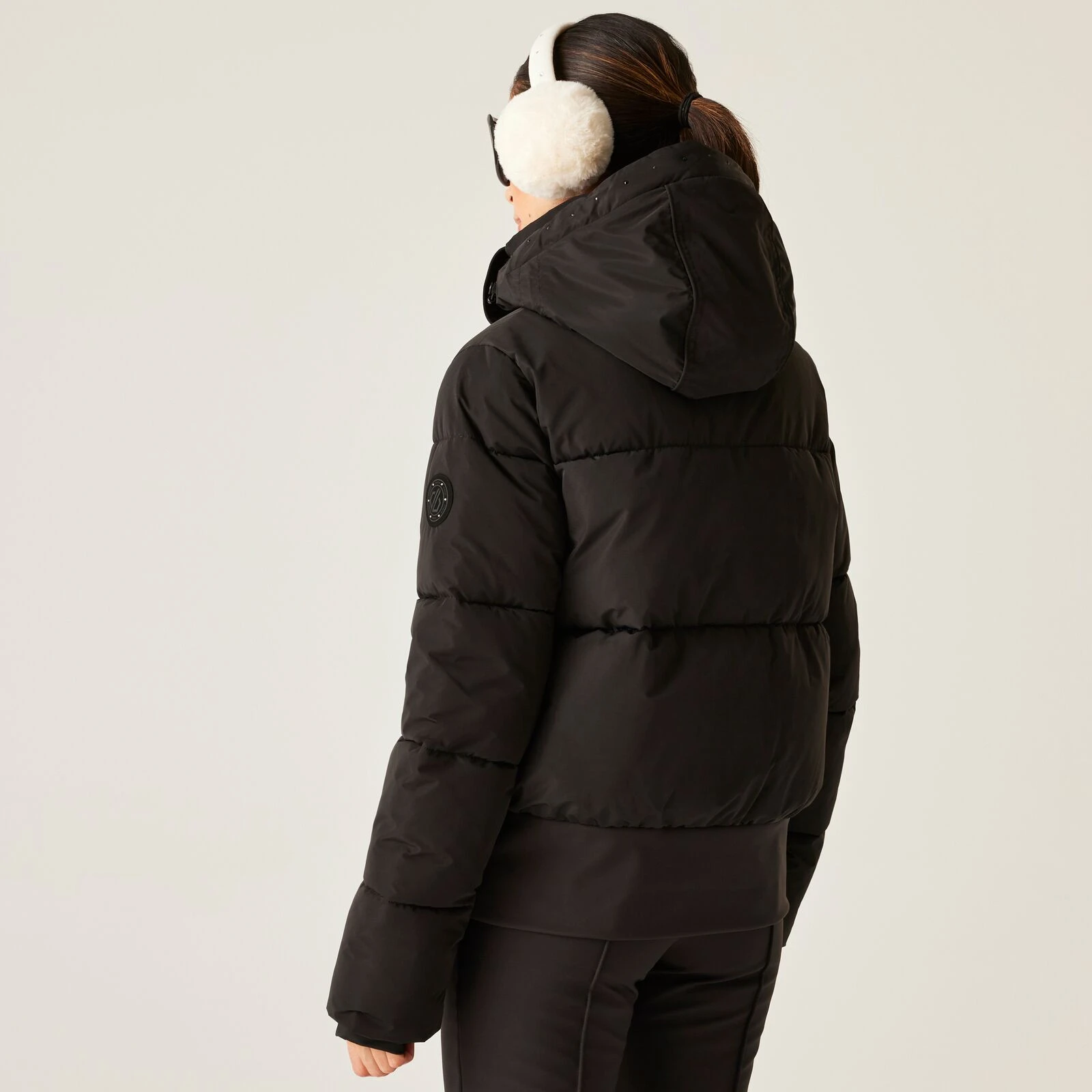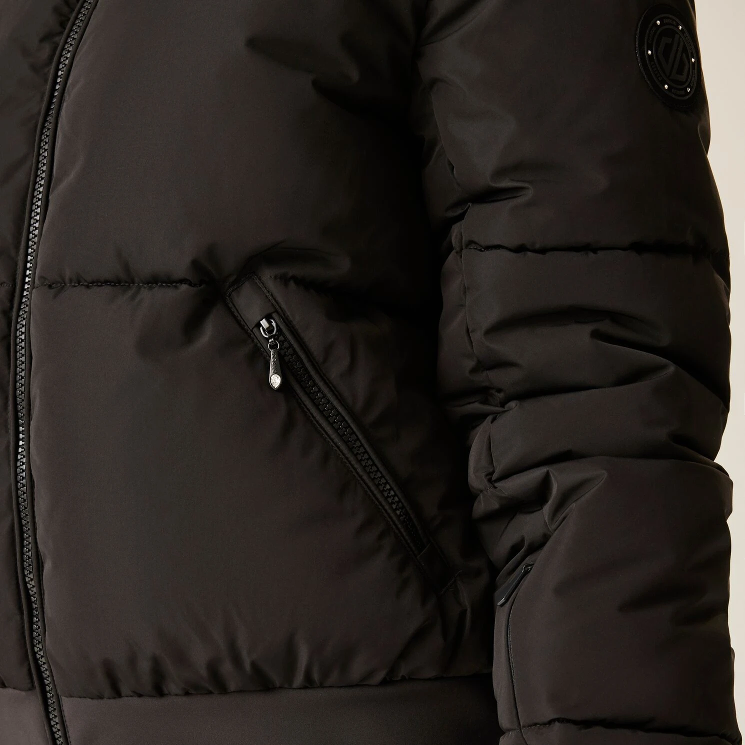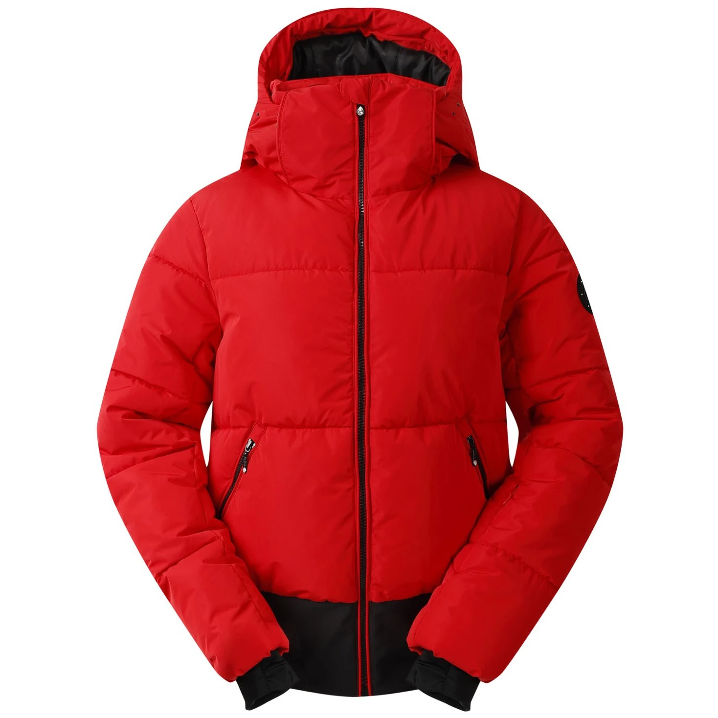Vrhunski skijaški elementi uključuju džep za ski kartu na rukavu, unutarnji mrežasti džep s krpicom za naočale i potpuno zalijepljene šavove za potpunu zaštitu od vlage. Elegantan izgled naglašavaju kristalni ukrasi na kapuljači i patentnim zatvaračima, koji jakni daju sjaj i luksuzan stil, idealan za zimske dane na padini.