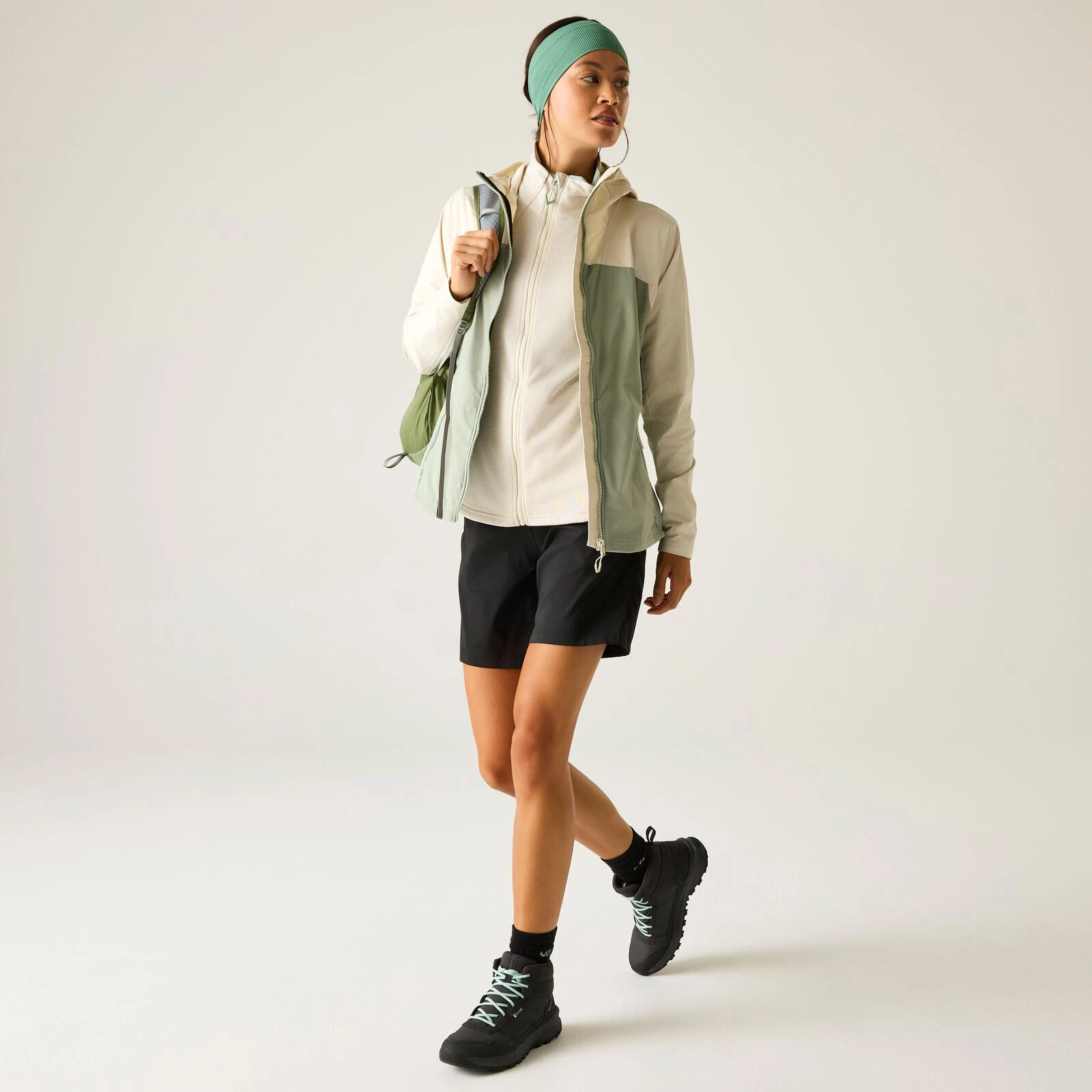 Praktični detalji, poput džepova na patentni zatvarač, kapuljače s elastičnim rubom i podesivog donjeg ruba, povećavaju funkcionalnost pri nošenju. Jakna je dodatno opremljena UV zaštitom UPF 50+, tako da će vas pouzdano zaštititi tijekom boravka na suncu. Materijal čini kombinacija poliestera i recikliranog poliestera za uravnotežen omjer izdržljivosti i udobnosti.