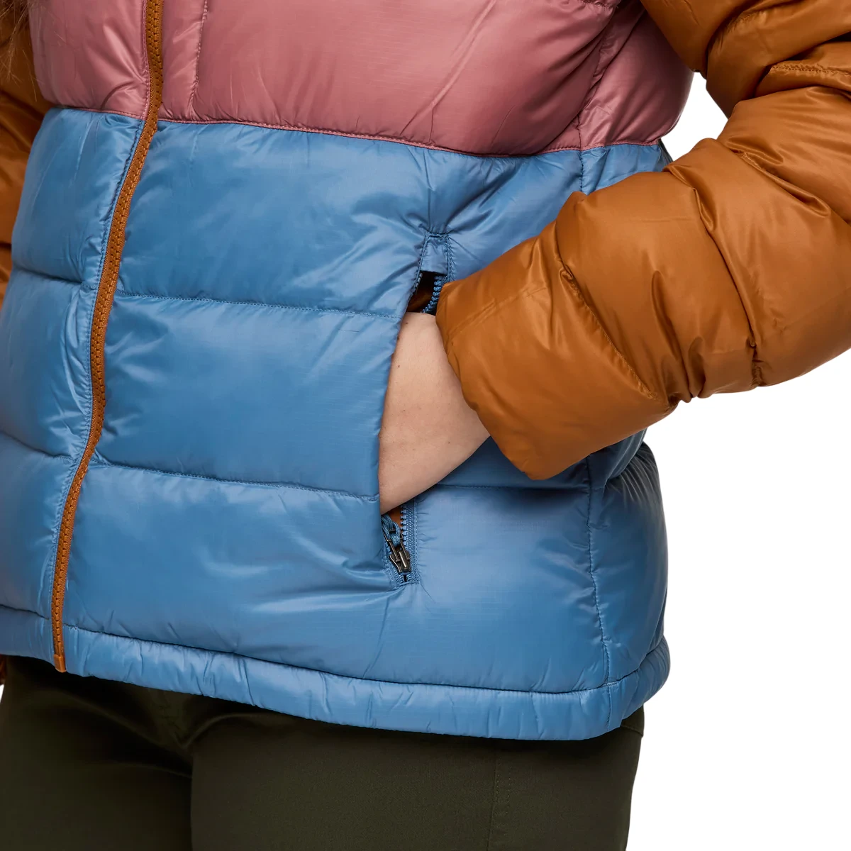Pouzdana zaštitu od vanjskih utjecaja osigurava izdržljivi 100% reciklirani najlon, koji je za veću izdržljivost dopunjen vodoodbojnim tretmanom DWR. Maksimalnu toplinsku udobnost osigurava visokokvalitetno punjenje od perja s ispunom 800 cuin i certifikatom Responsible Down Standard (RDS), koji je jamstvo da perje potječe iz odgovornih izvora. Razmaci između prošiva su veći za još veću toplinu. Dodatne prednosti uključuju dva džepa za ruke s patentnim zatvaračem, dva unutarnja džepa i džep na prsima s patentnim zatvaračem. Patentni zatvarač po cijeloj dužini ima zaštitni preklop s unutarnje strane. Pripijena kapuljača ima elastične rubove, kao i manžete na rukavima. Donji rub ima vezice za zatezanje. Cijela jakna se može spakirati u mali džep.