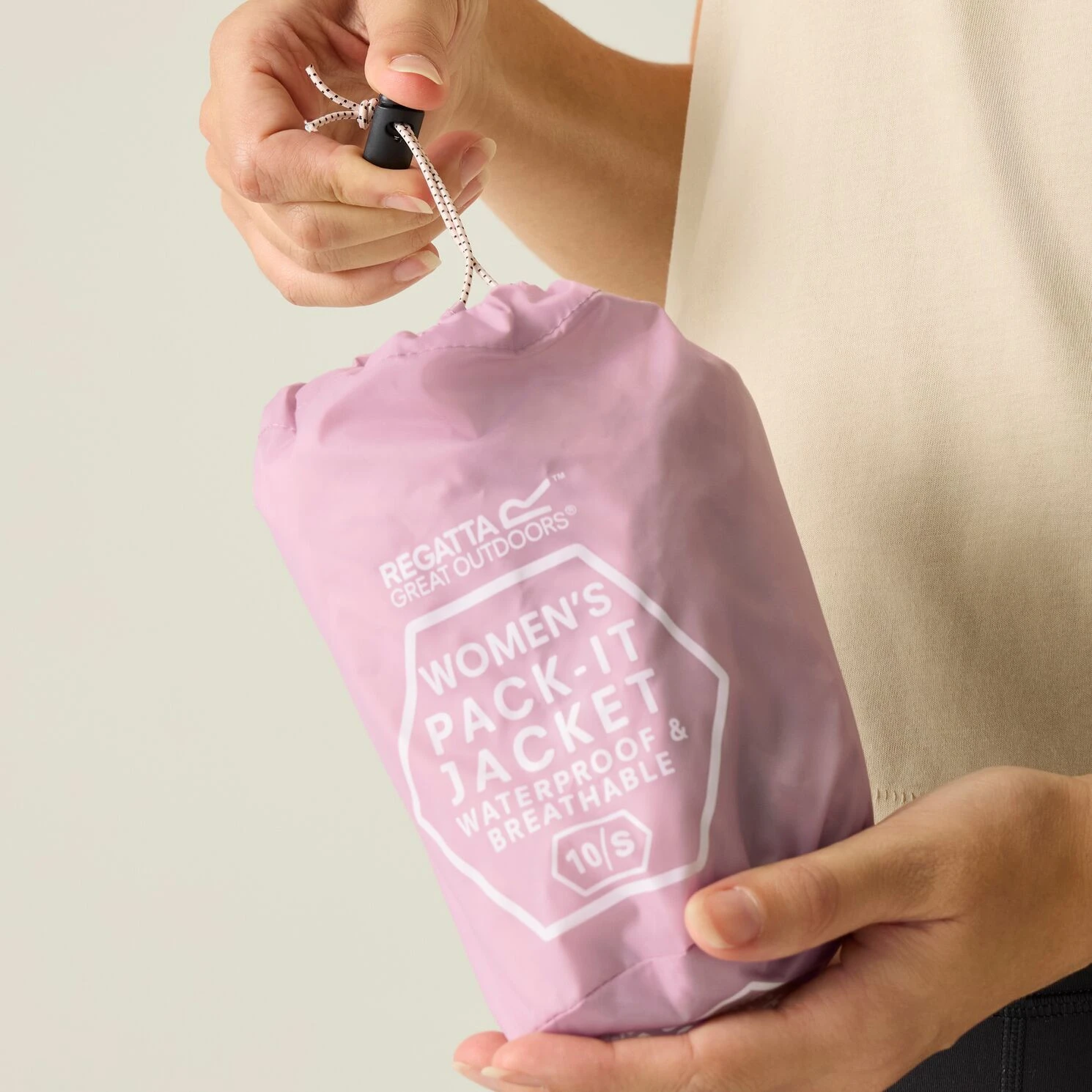 Regatta Womens Pack It Jacket III je ultra lagana jakna s kojom ne morate brinuti o vjetru i slaboj kiši. Zahvaljujući maloj težini stane u džep malog ruksaka te će stoga biti savršena zaštita u slučaju neočekivane kiše. Model je lišen svih nepotrebnih dodataka kako bi se njegova težina i volumen dodatno smanjili nakon pakiranja. Praktična kapuljača zaštitit će vašu glavu od hladnog vjetra, a lijepljeni šavovi će vam dati više vremena da se sakrijete od pljuska. Regatta Womens Pack It Jacket III nije samo izvrsno rješenje za prvu kišu. Ova ženska planinarska jakna poslužit će i za hladnijih ljetnih večeri, ona je barijera protiv hladnijeg vjetra kada se vraćate kući ili tijekom biciklističke vožnje. Bit će savršen dodatak asortimanu za svako putovanje "za svaki slučaj".