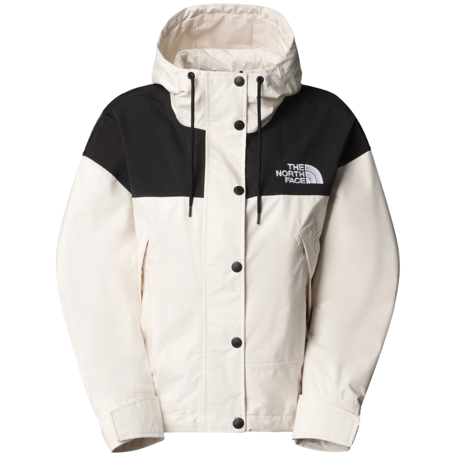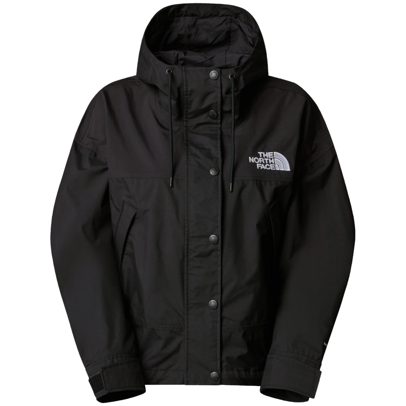 Za praktičnu upotrebu opremljena je podesivom kapuljačom, olujnim preklopom s drukerima koji prekriva glavni patentni zatvarač i dva džepa s patentnim zatvaračem za ruke, podstavljena recikliranim poliesterom. Produženi stražnji rub osigurava bolju pokrivenost leđa i udobnost pri kretanju. Izvezeni logo The North Face na prsima i stražnjem ramenu upotpunjuje ikonični dizajn.