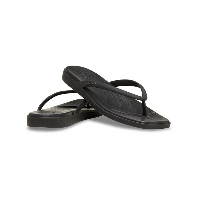 Lagani uložak i potplat od Croslite™ materijala pružaju amortizaciju i udobnost pri hodu, dok blago podignuti klinasti potplat dodaje nježan uspon i elegantnu siluetu. Zahvaljujući maloj težini, fleksibilnoj konstrukciji i ikoničnoj Crocs udobnosti, natikače Miami Flip idealan su izbor za tople ljetne dane.