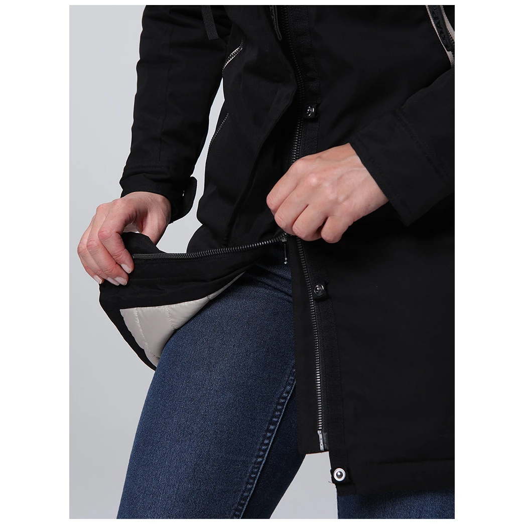 Ženski kaput Loop NABELLA savršen je izbor za hladne dane u gradu i za slobodne aktivnosti. Kombinira elegantan izgled s praktičnim funkcijama. Tretman pamuka čini kaput ugodnim na dodir, dok podstava od tafta osigurava cjelodnevnu udobnost. AQUA PRO vodonepropusna membrana pruža zaštitu od kiše, a izolacija od POLYTHERM šupljih vlakana grijat će vas čak iu hladnijim danima.