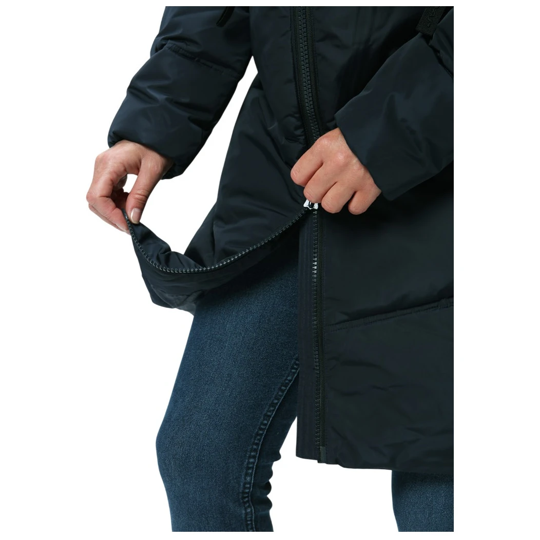Materijal s premazom DryTech odbija vodu, tako da će vas kaput pouzdano zaštititi od laganog snijega ili kiše. Čvrsta, podesiva kapuljača pružit će dodatnu zaštitu od vjetra i hladnoće. Kaput se kopča na dvosmjerni patentni zatvarač, koji nije samo praktičan, već i dizajnerski zanimljiv.