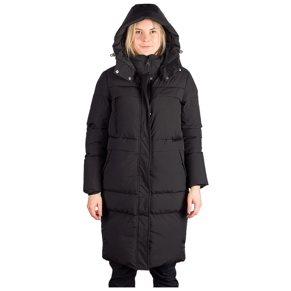 Ženski zimski kaput Evelynn kombinira toplinu, udobnost i moderan dizajn. Produljeni kroj do koljena i praktični detalji čine ga idealnim za svakodnevno nošenje i zimske šetnje.