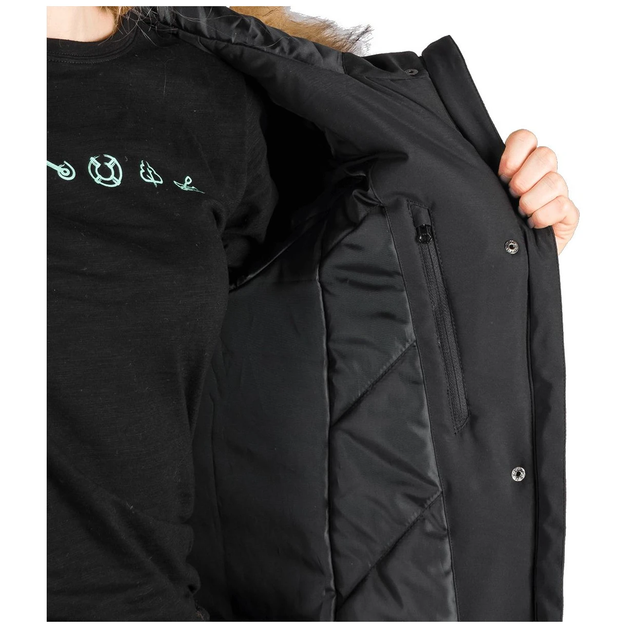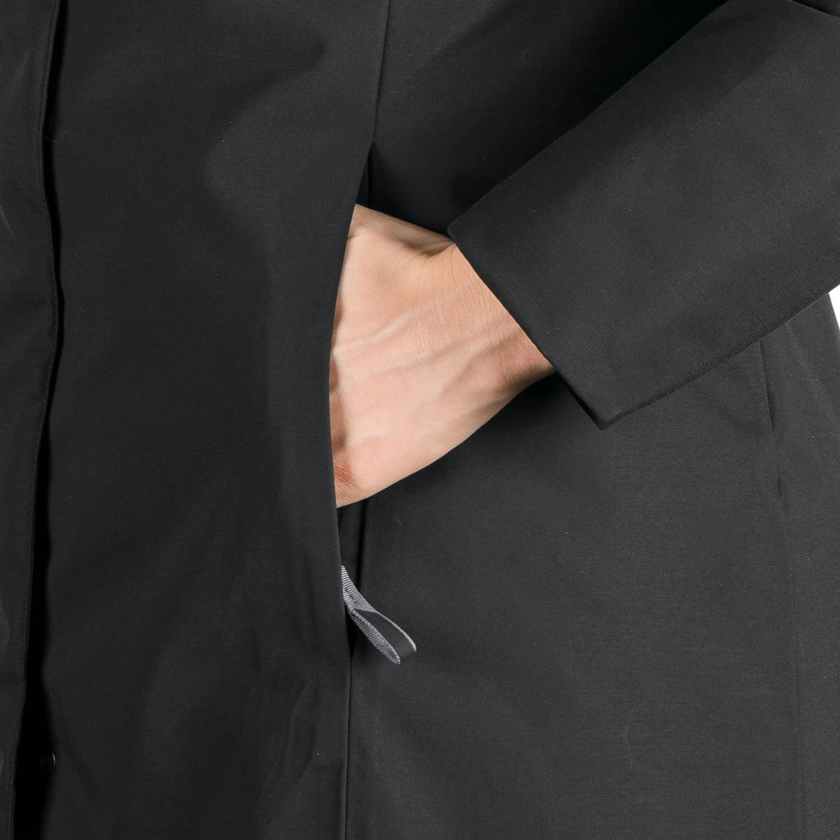 Površina materijala obrađena je ekološkim vodoodbojnim tretmanom koji osigurava da kišne kapi i nečistoće klize po materijalu bez upijanja. Time se ne samo povećava otpornost na vodu, već i vijek trajanja jakne. Dostupna su dva prostrana bočna džepa i unutarnji džep s patentnim zatvaračem za sigurno pohranjivanje sitnica.