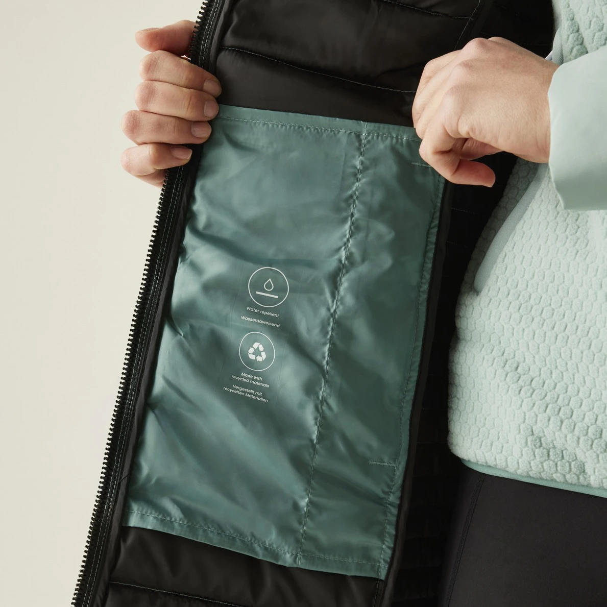 Vrhunska reciklirana sintetička izolacija gramaže 200 g/m² pruža ugodnu toplinu bez upotrebe perja. Izdržljiva vodoodbojna obrada dodatno štiti od vlage i lagane kiše.