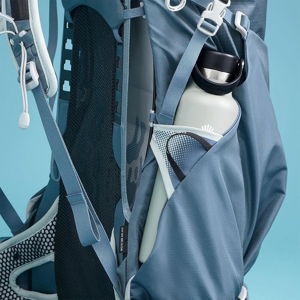 Glavni pretinac s rolo zatvaranjem i RF-varenim šavovima jamči pouzdanu zaštitu od vode, dok vanjski džepovi od materijala koji se brzo suše olakšavaju pristup potrebnim stvarima. Praktični detalji poput bočnih kompresijskih remena, držača za treking štapove Stow-on-the-Go, dva džepa s patentnim zatvaračem na pojasu za kukove ili zasebnog džepa za hidratacijski mjehur čine Downburst™ savršenim izborom za aktivne žene koje žele ostati u pokretu – i suhe.