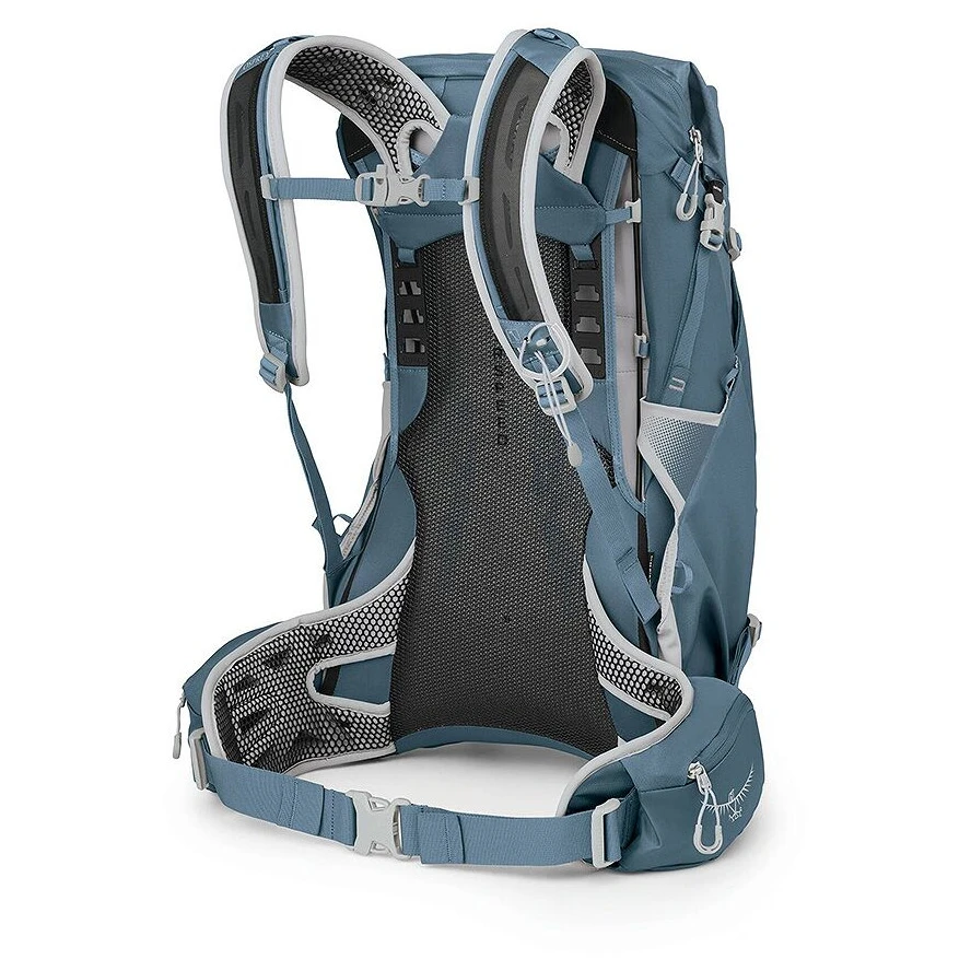 Ovaj izdržljivi i funkcionalni ženski ruksak kombinira izuzetno prozračni sustav za leđa AirSpeed™ s vodootpornom konstrukcijom glavnog pretinca (IPX5), tako da će vaša oprema ostati suha čak i za jakih kiša. Izrađen od 100% recikliranog najlona s bluesign® certifikatom, spaja ekološke materijale s tehničkom izvrsnošću po kojoj je Osprey poznat.